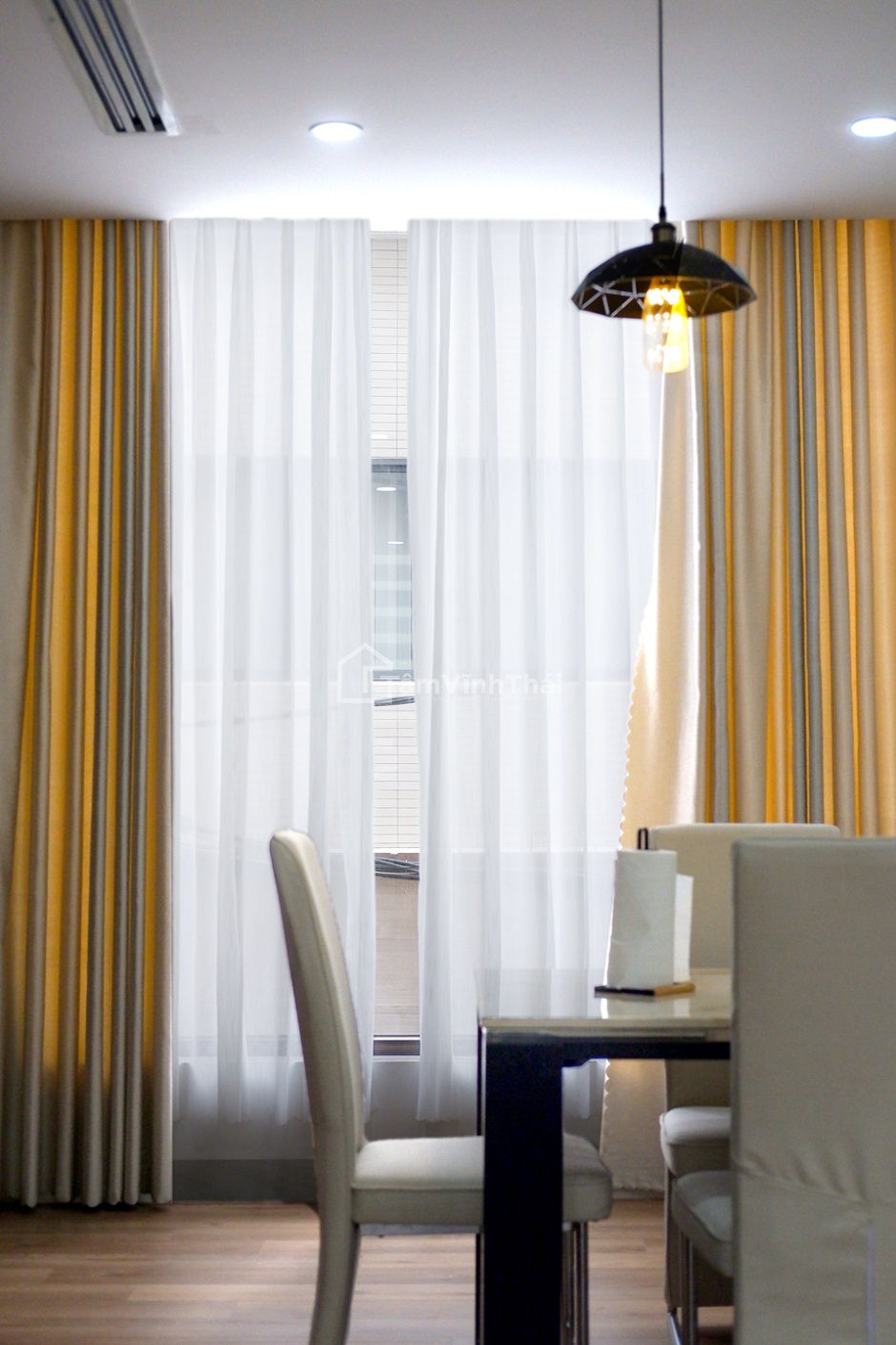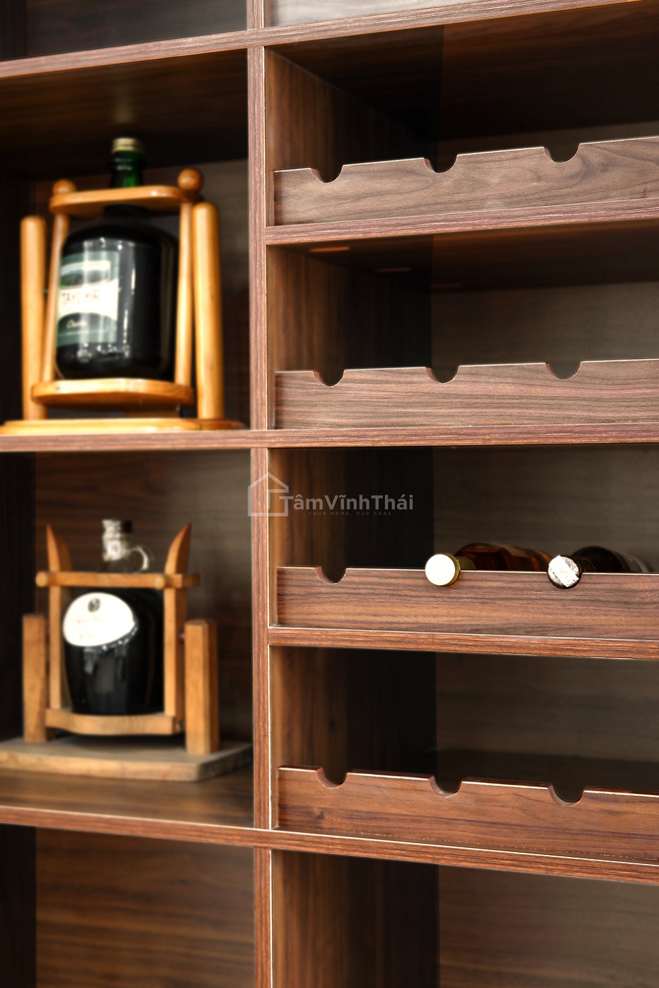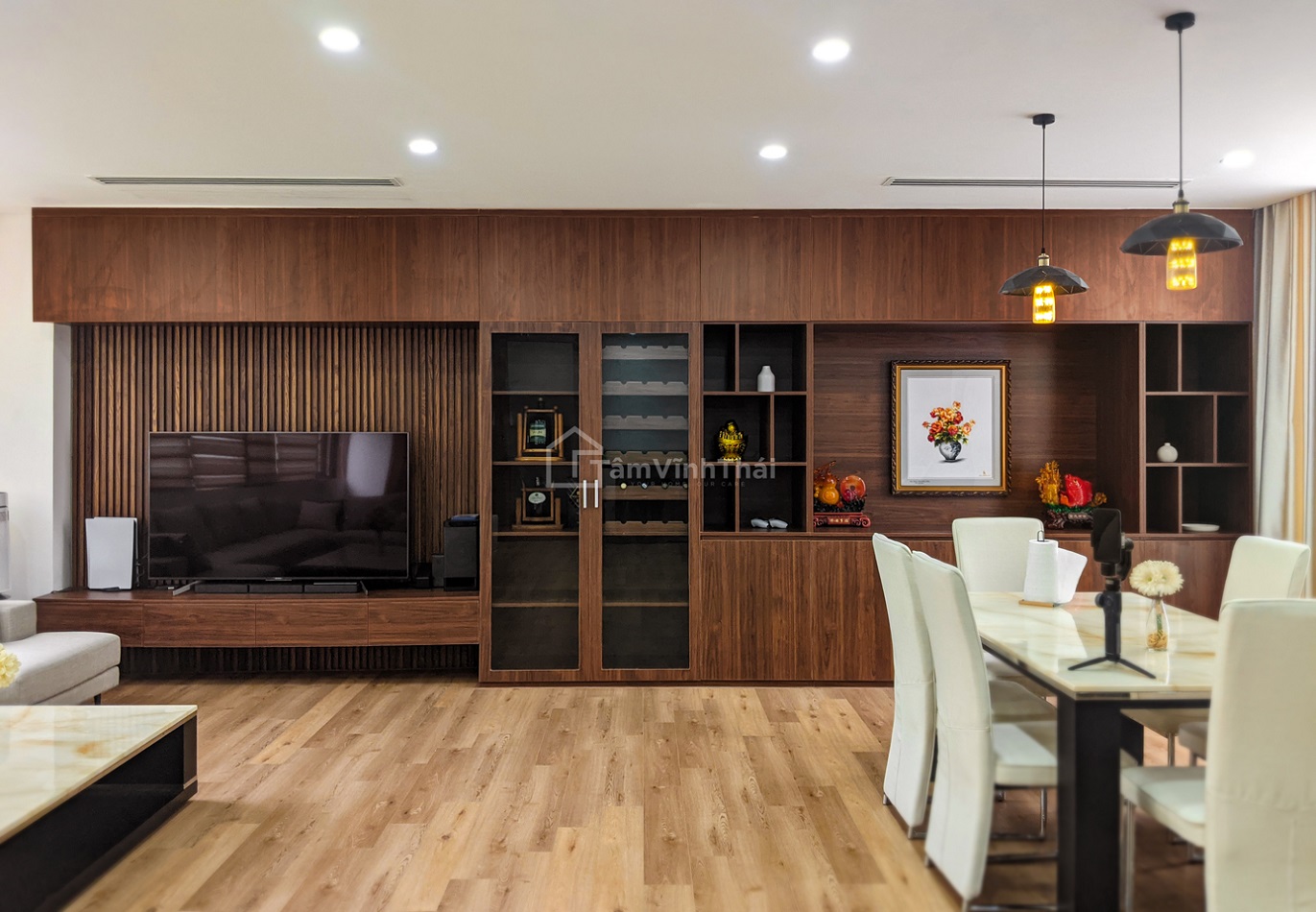 Giải pháp của chúng tôi là sử dụng chất liệu gỗ sang trọng kết hợp với những vật dụng tông màu sáng cũng như cách sắp đặt hợp lí để giải phóng không gian từ phần nhìn đến công năng sử dụng.