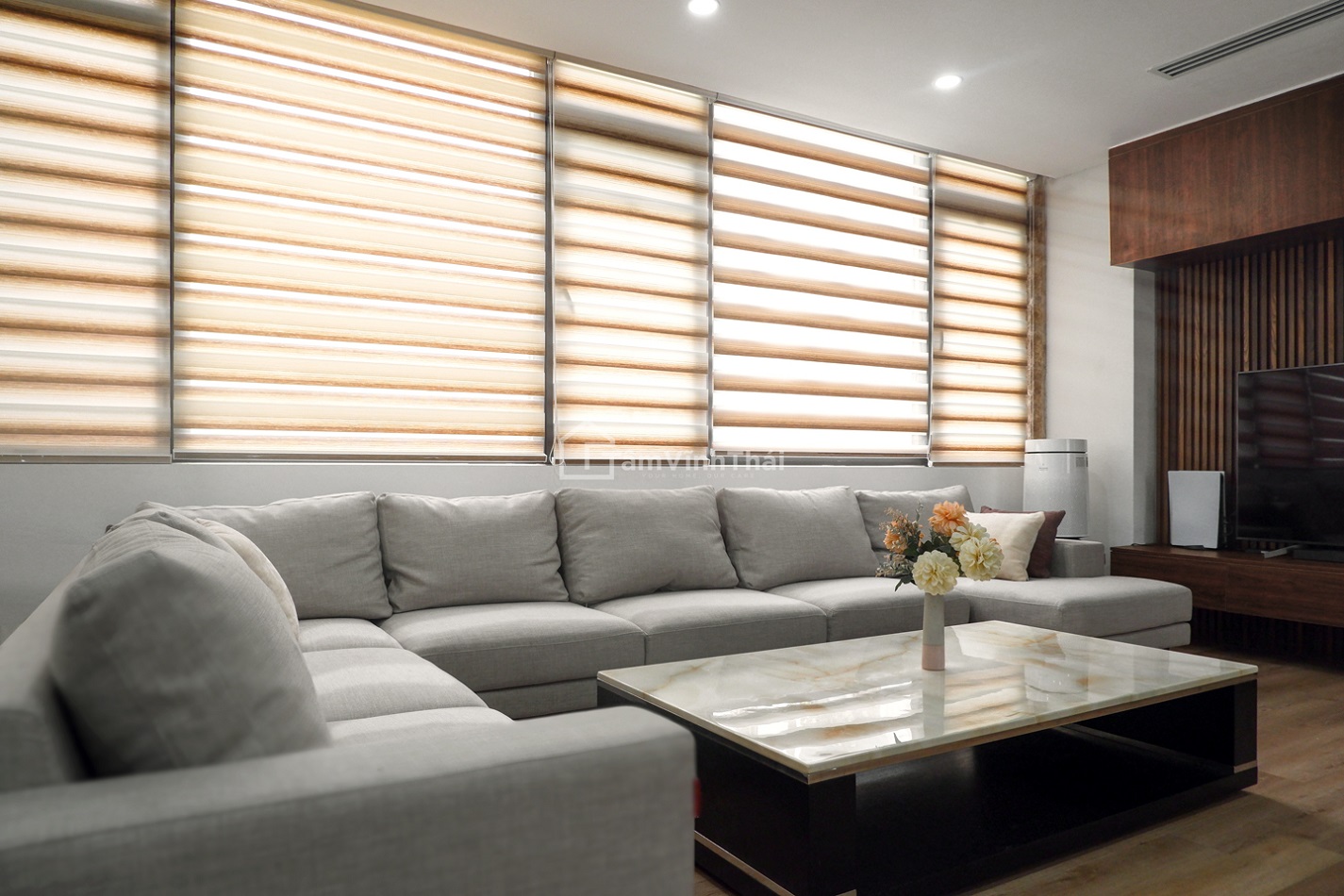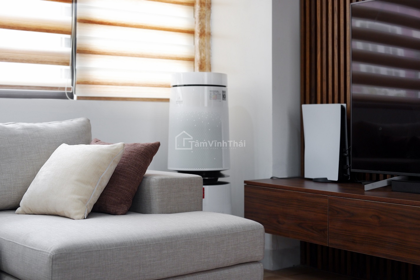 Căn phòng khách theo phong cách hiện đại, tươi mát sẽ là không gian sinh hoạt tuyệt vời cho tất cả thành viên của gia đình.
