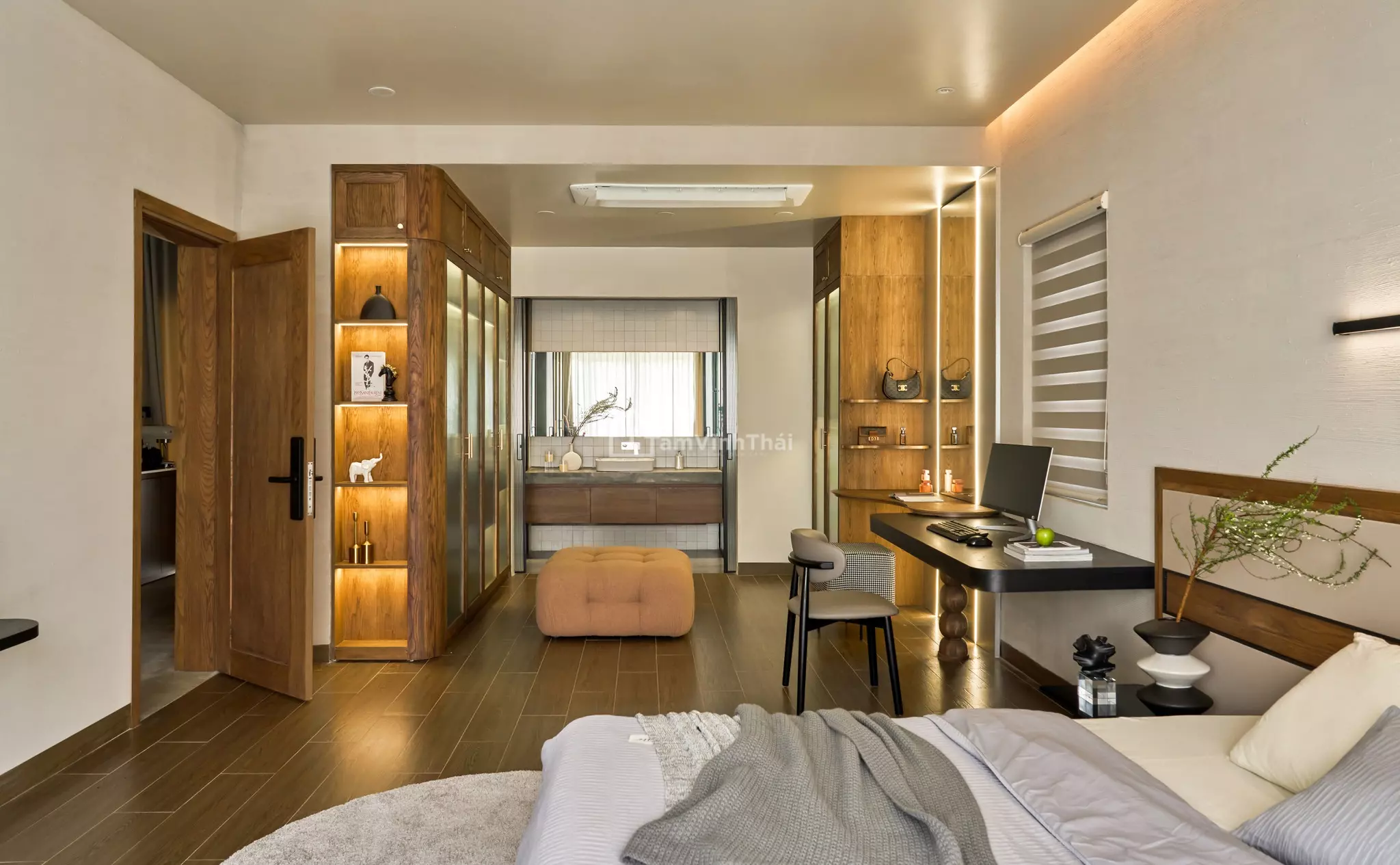 Tinh tế đặt trọng tâm vào trải nghiệm của chủ nhân trong ngôi nhà, do đó người thợ buộc phải đủ thấu hiểu để thiết kế công năng sử dụng hoàn hảo. Sự kết hợp hài hòa giữa mảng sáng của tổng thể, và mảng tối của nội thất, từ đó tạo nên vẻ đẹp ấm áp, gần gũi nhưng không kém phần sang trọng cho toàn bộ không gian căn villa này.