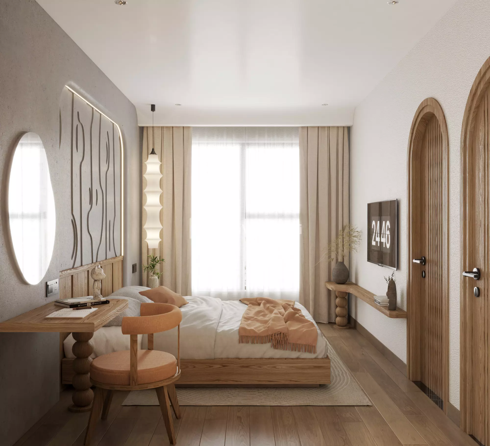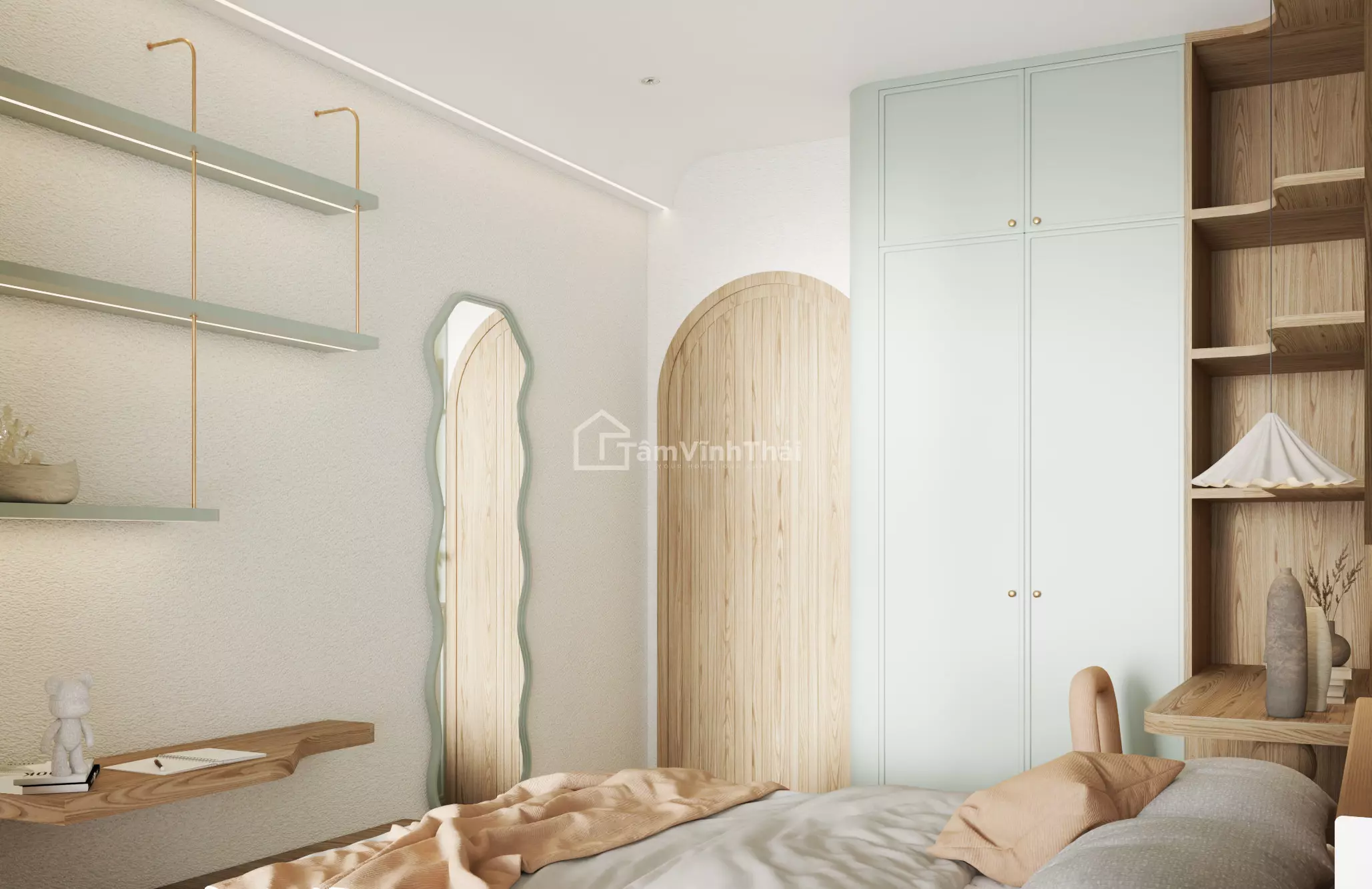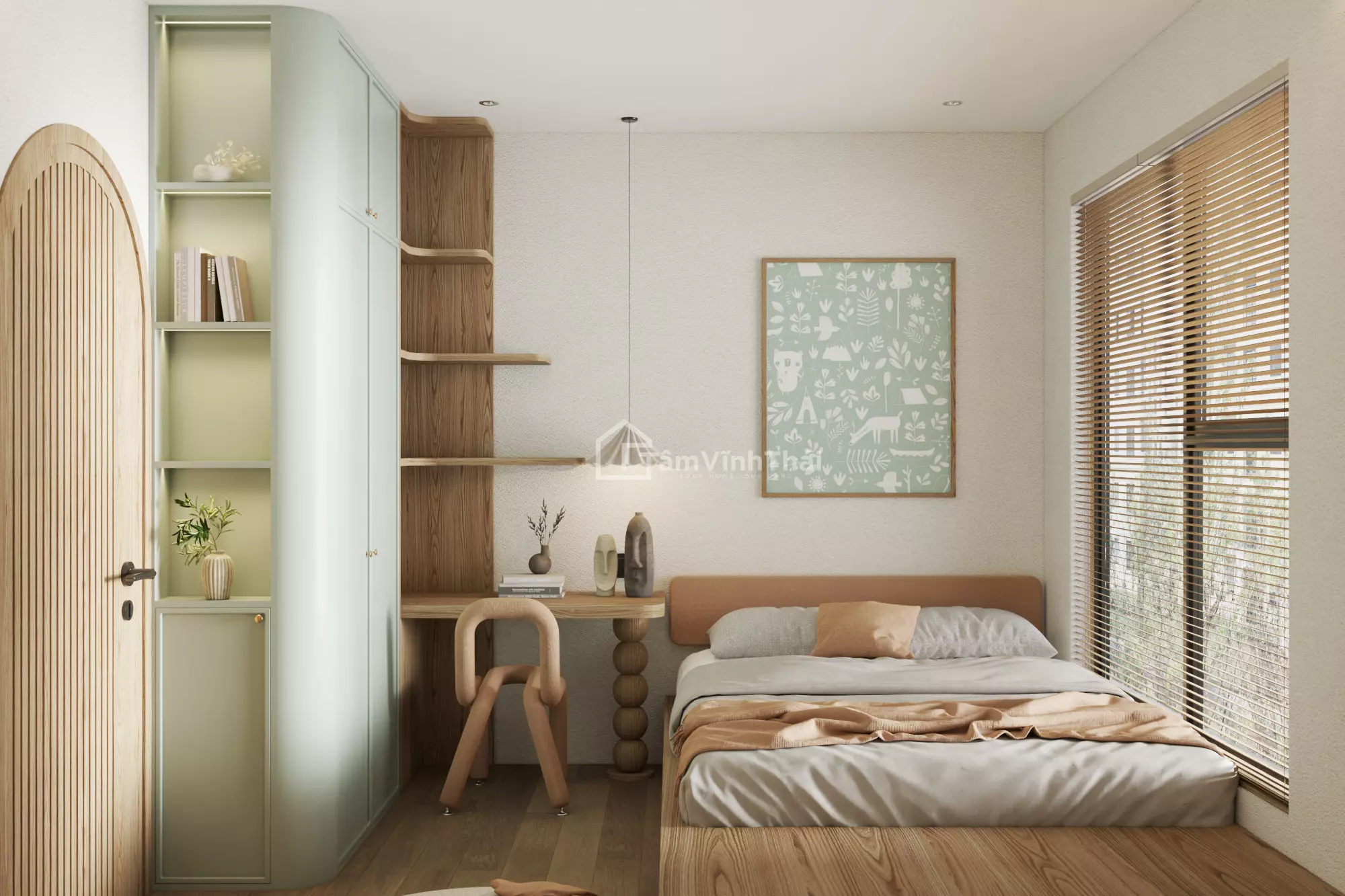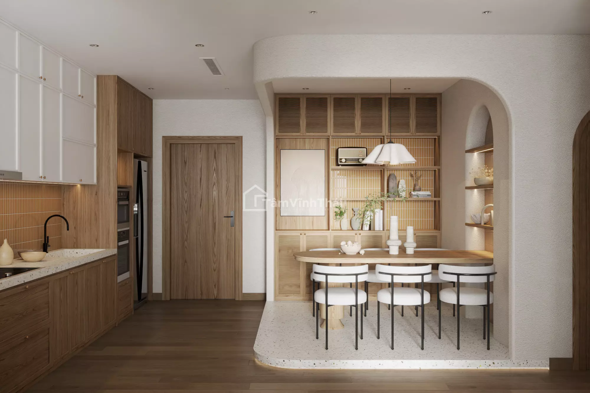 Sử dụng vật liệu thô mộc hoà phối cùng bẳng màu trung tính trắng – be – gỗ và nguồn ánh sáng tràn qua các ô cửa, tất cả mang đến cho gia chủ một không gian sống ngập tràn cảm giác yên bình và tĩnh lặng trong tâm hồn, hình thành mối liên hệ sâu sắc với tự nhiên và cảm nhận những hạnh phúc gói gọn trong vẻ đẹp nguyên sơ vốn có…