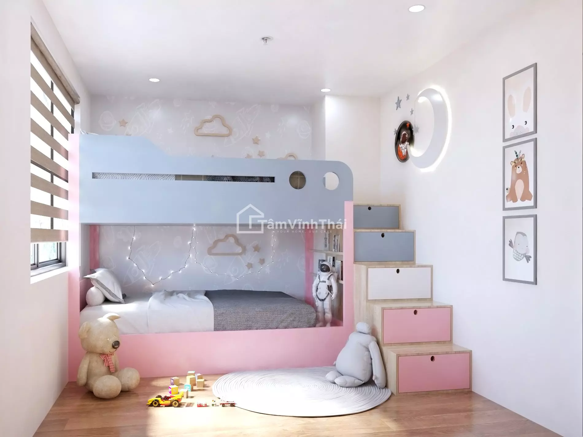 Đối với những căn hộ chung cư như FPT Plaza thường có diện tích phòng ngủ không quá rộng. Do đó chúng tôi đã tối ưu phương án thiết kế sao cho hợp lý cùng những gam màu tươi trẻ. Chắc chắn đây sẽ phương án lý tưởng mà bạn không nên cho bé con của mình.