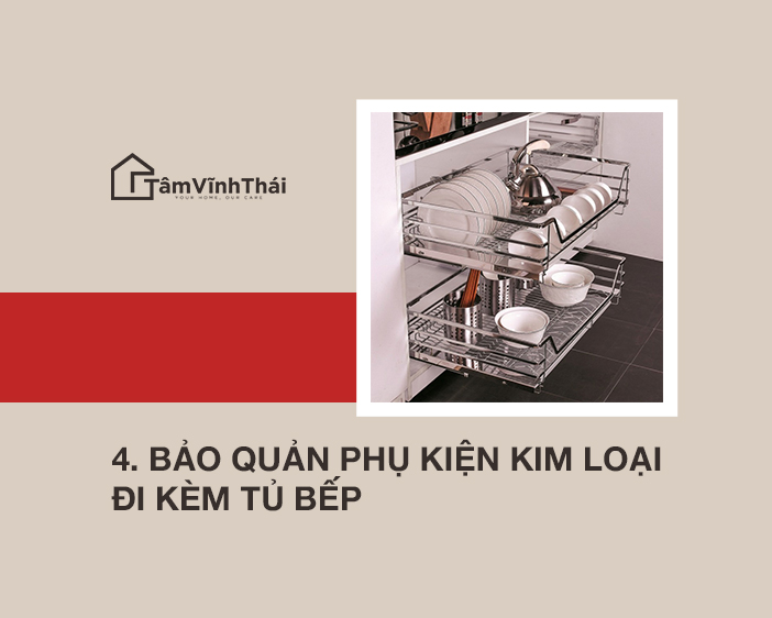 4. Bảo quản phụ kiện kim loại đi kèm tủ bếp